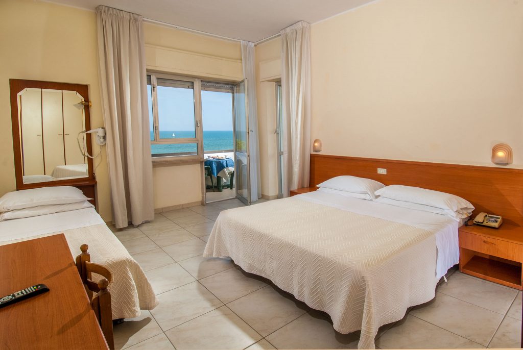 Accoglienti, luminose e con un nuovissimo bagno con box doccia in cristallo, ideale per regalarsi momenti di pace e tranquillità. Le camere sono molto fresche e poco soleggiate con ampio balcone fronte mare.