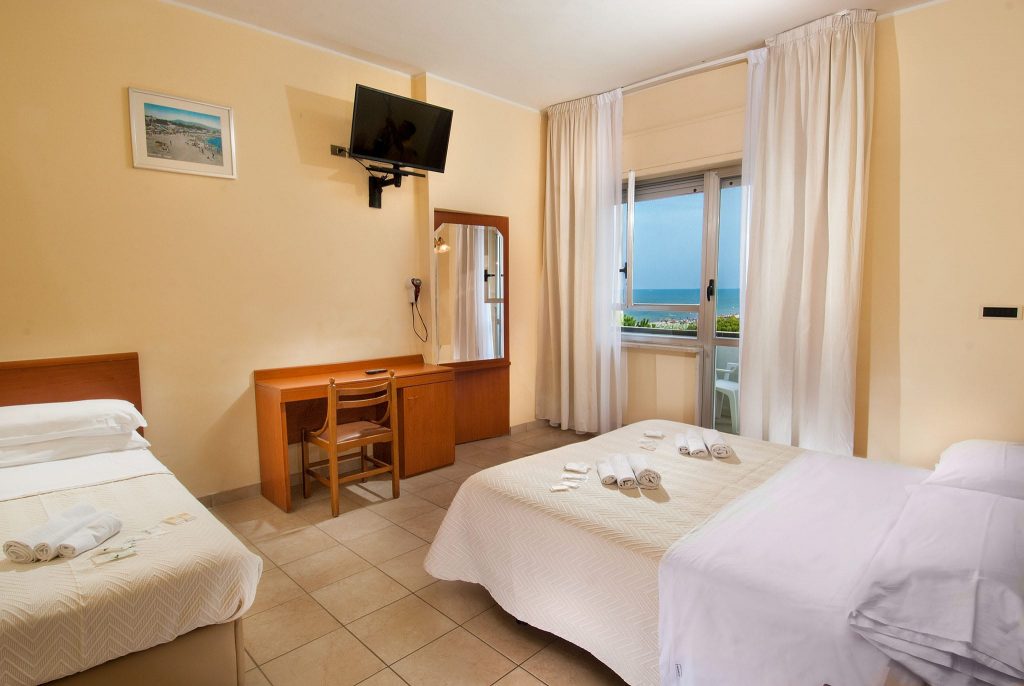 Accoglienti, luminose e con un nuovissimo bagno con box doccia in cristallo, ideale per regalarsi momenti di pace e tranquillità. Le camere sono molto fresche e poco soleggiate con ampio balcone con vista mare laterale.